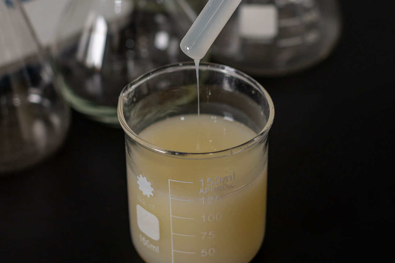 防水彈性乳液外觀(guān)為乳白色乳液狀,其主要成分為自交聯(lián)丙烯酸酯共聚型樹(shù)脂,屬于水性乳液,具有低粘度、高固含量的特點(diǎn)。